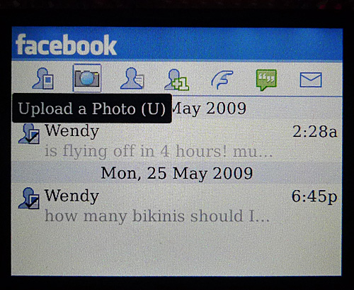 Upload a photo (even auto creates an album for you called "Mobile Uploads"), poke someone or send an fb message. All simplified.